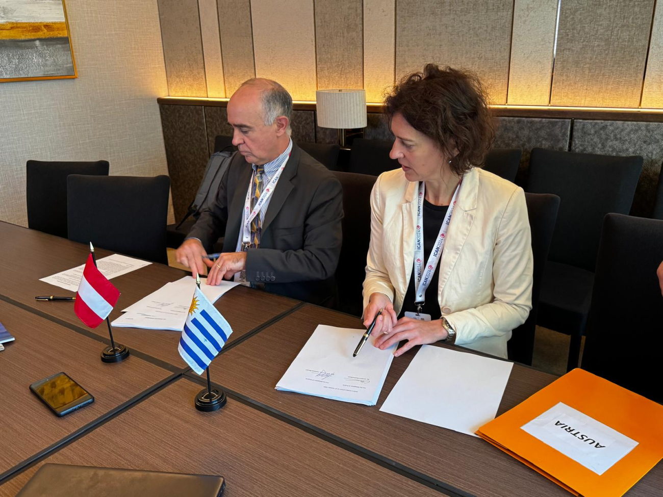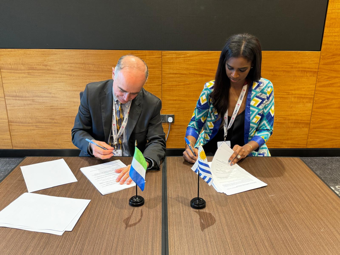 En las imágenes que acompañan a esta noticia, quedan registradas las firmas de Memorándums de Entendimiento (MOU) que ha efectivizado la delegación de Uruguay con sus homónimas de Austria y de Sierra Leona.