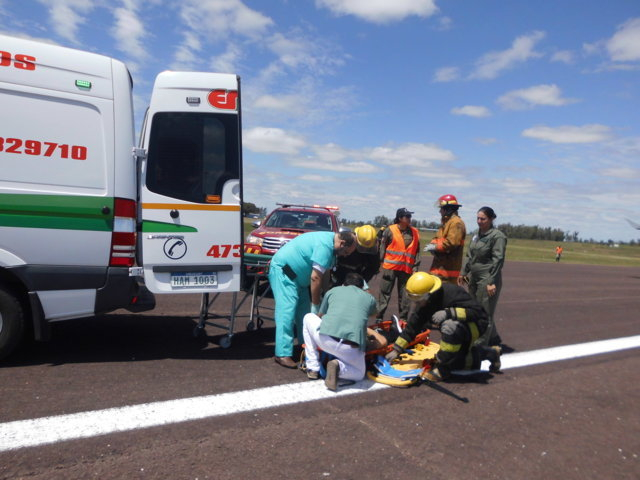 Como resultado de este accidente simulado, perece uno de los pasajeros de la aeronave y los restantes 5 ocupantes son traslados hasta los centros asistenciales locales presentando poli traumatismos graves y quemaduras de entidad.